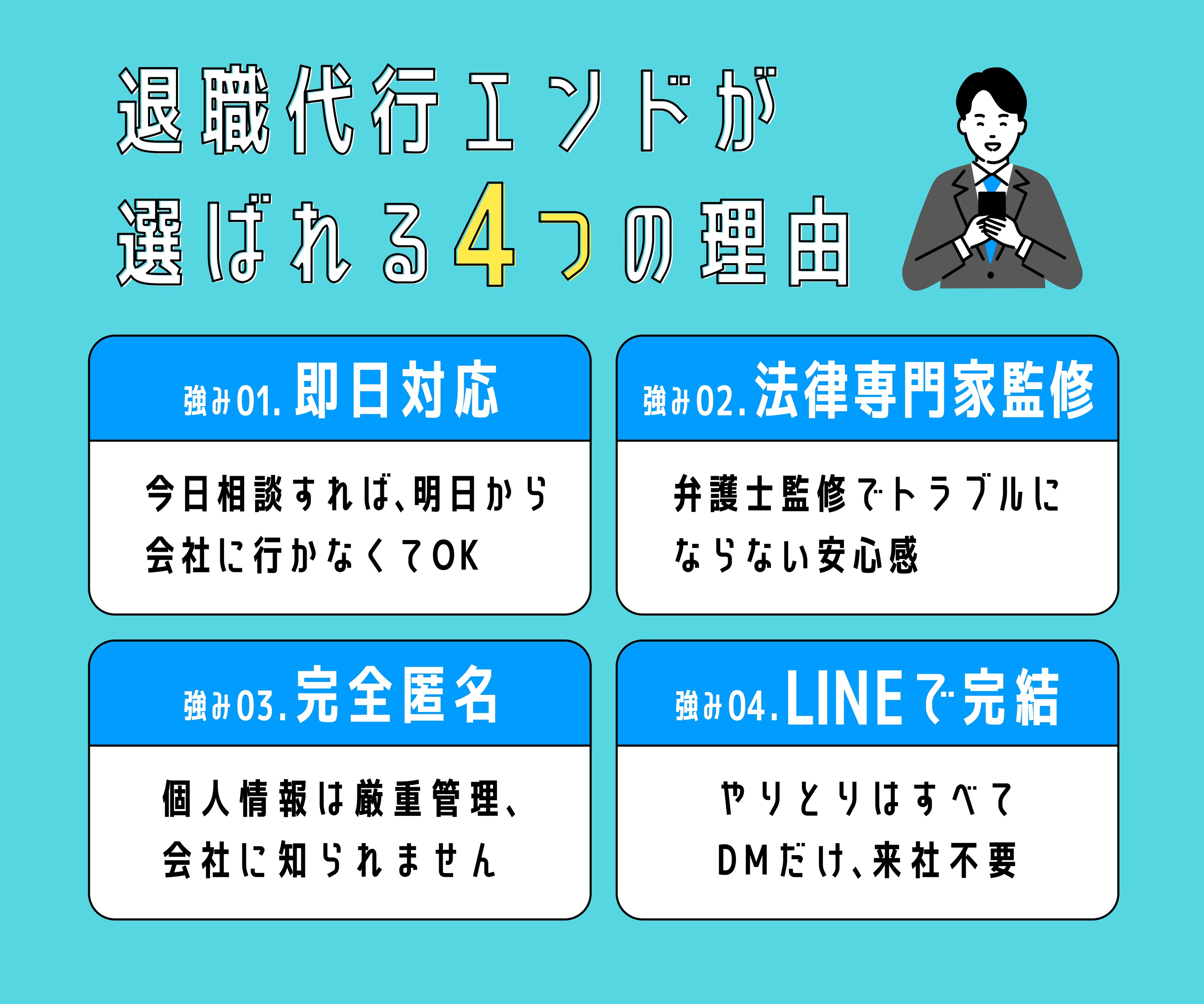 退職代行エンドへのご相談・お問い合わせ・ご依頼はLINEもしくは下記フォームからお願いします。 「必須」は必須項目ですが、それ以外も記載して頂ければ、よりスムーズに詳細にご相談に対応できます。
